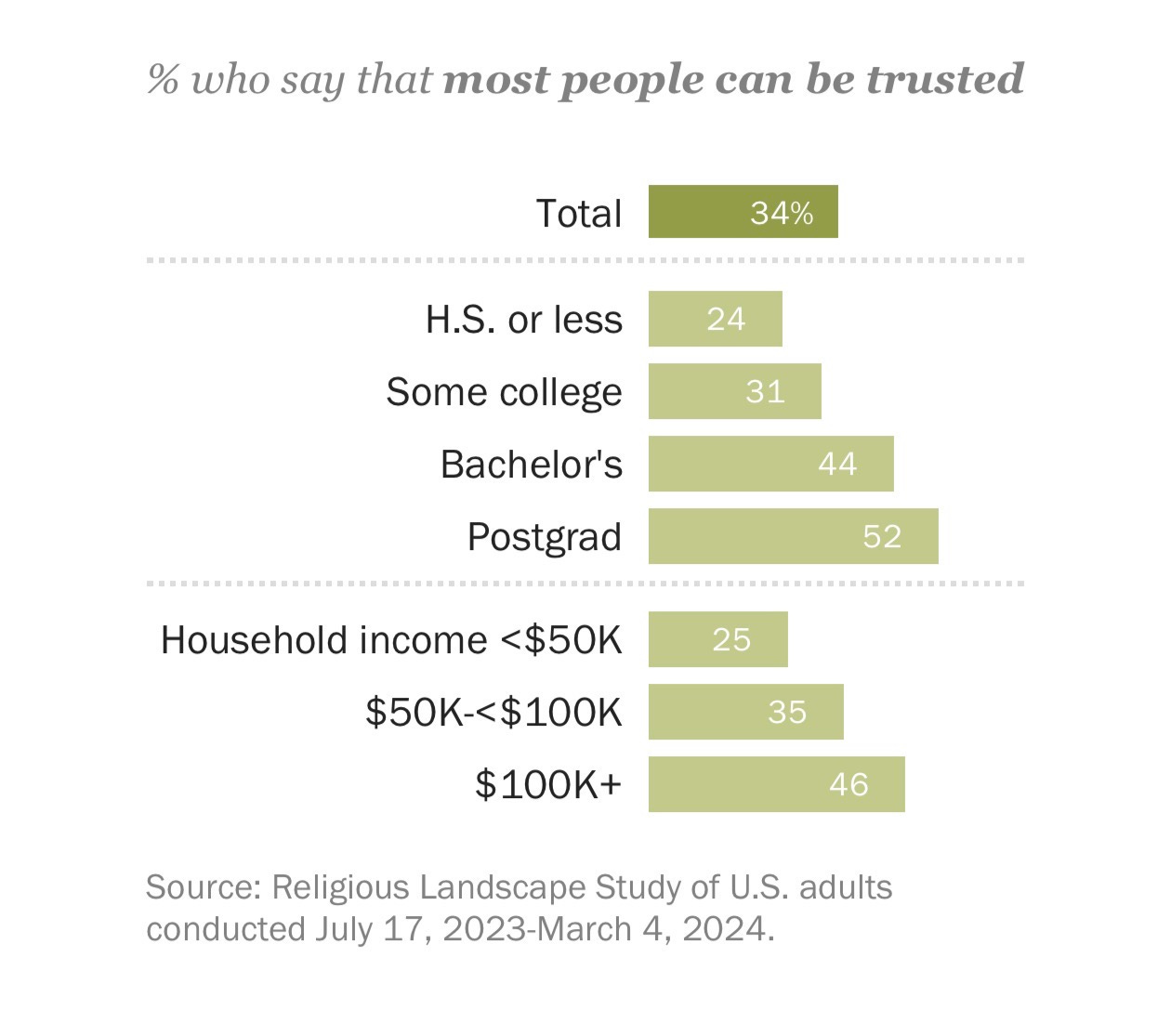 “Trust makes it easier for people to work together to solve problems…higher trust is associated with better -functioning democratic institutions.
